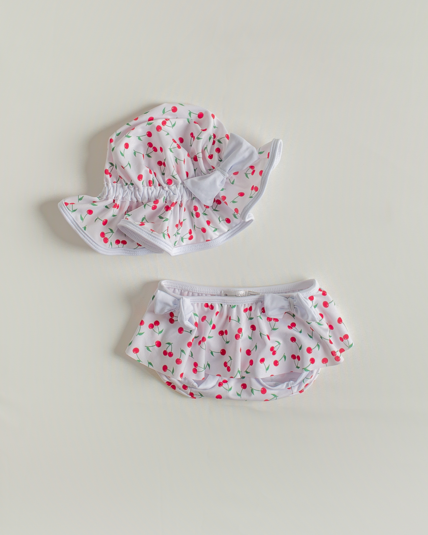 biquini bebe estampa cereja com chapéu.
