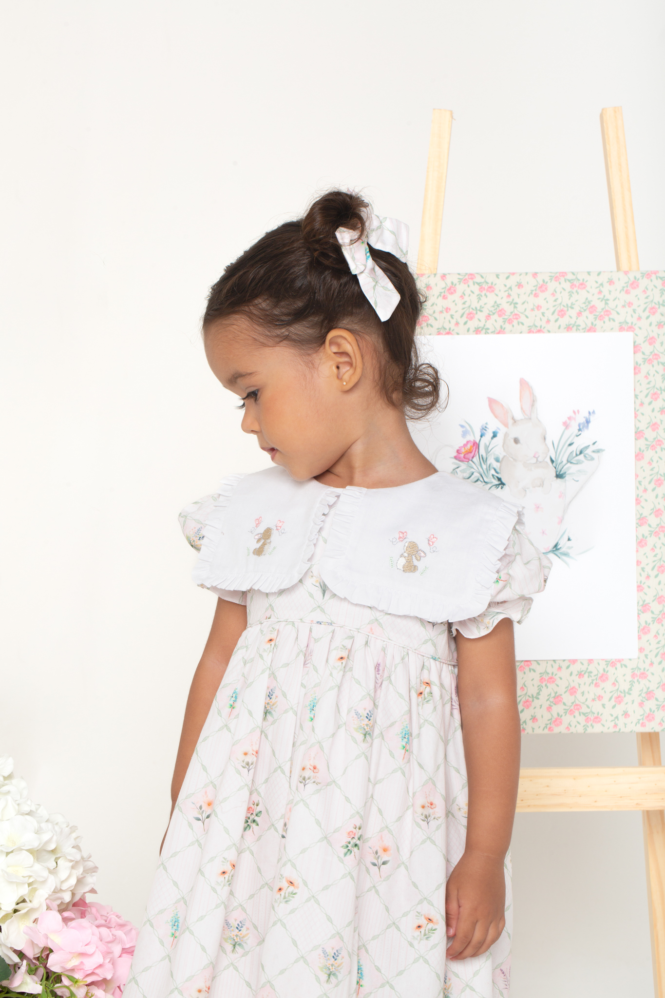 Vestido em algodão 100%, estampa digital com gola fustão cotelê com