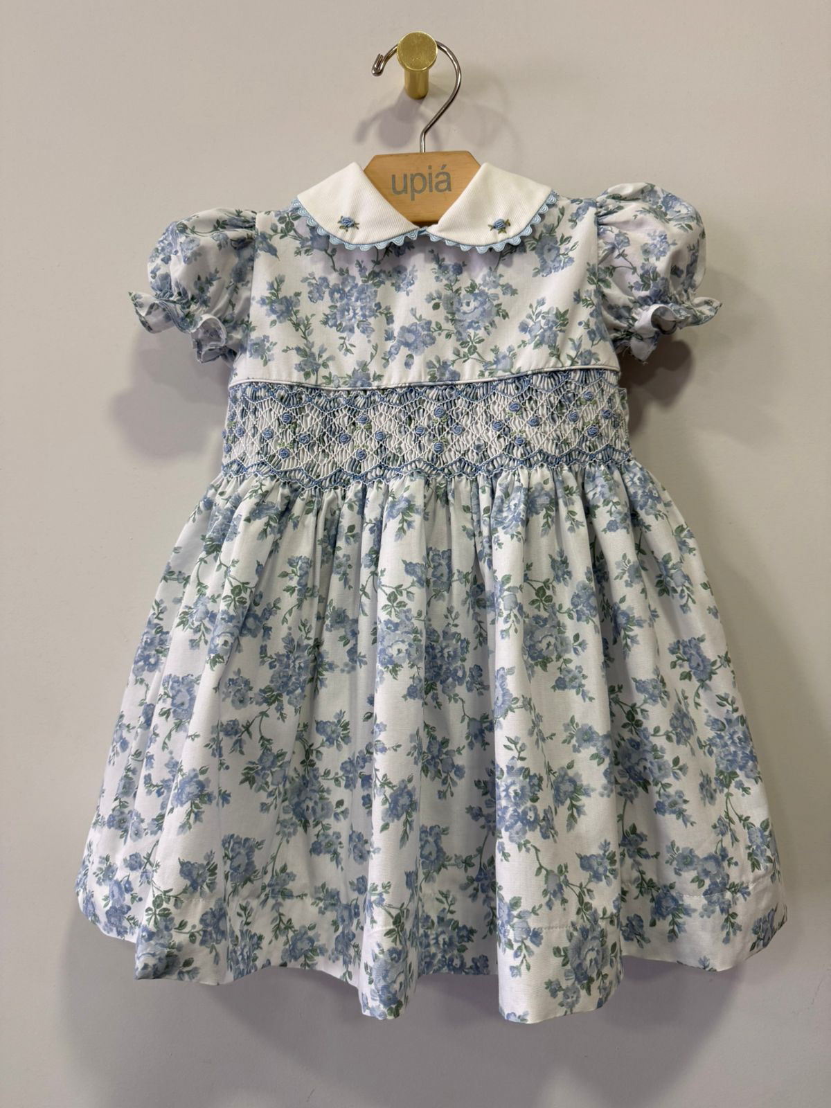 Vestido com casinha de abelha, gola cotelê com delicado bordado na gola.